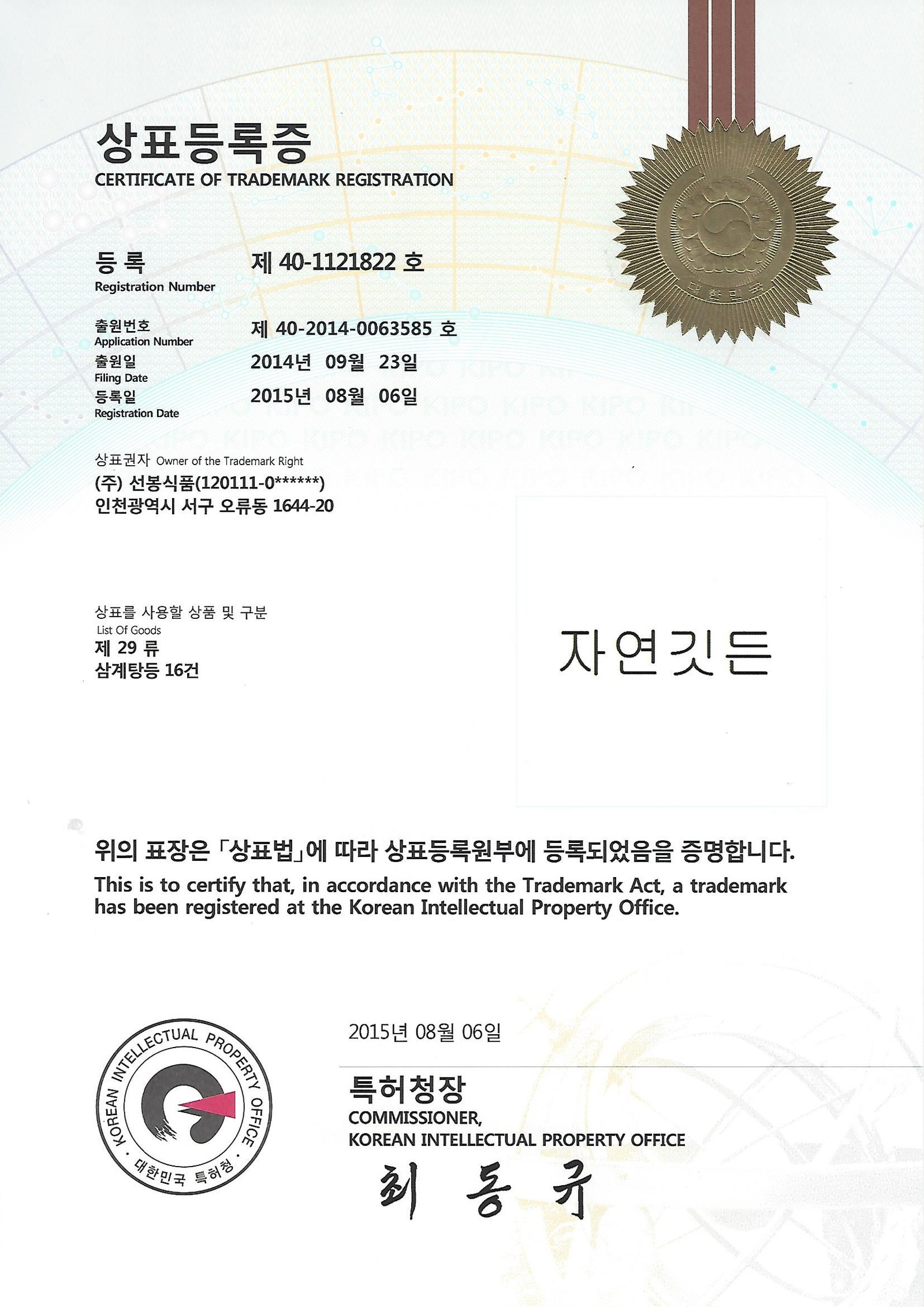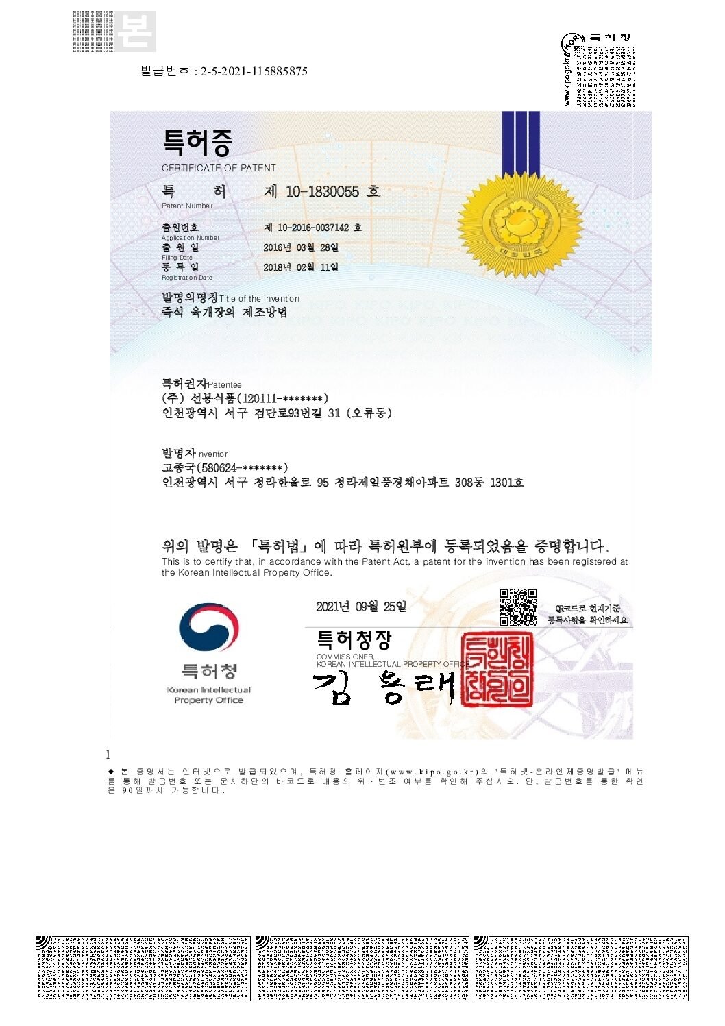 각종 인증과 특허는 안전한 원료, 정직한 공정, 그리고 품질에 대한