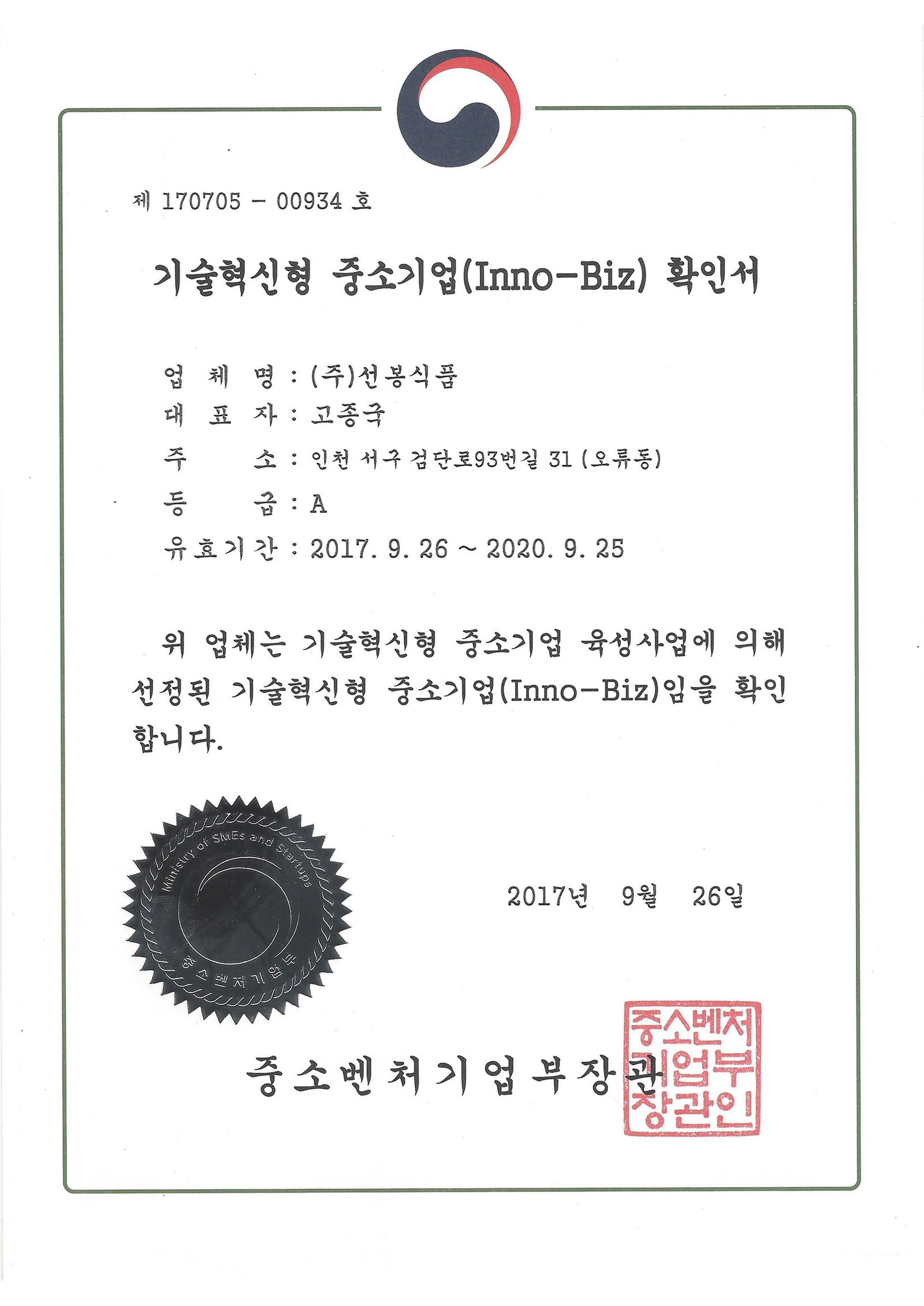 고객의 신뢰는 하루아침에 만들어지지 않는다는 것을 선봉식품은 잘 알고 있습니다.