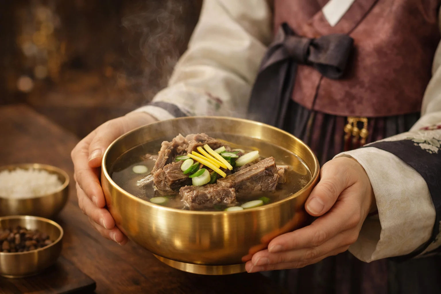 진한 국물과 큼지막한 소갈비로 맛이 일품이며 인삼, 은행, 잣, 대추를 넣어 영양식으로 좋은 제품입니다