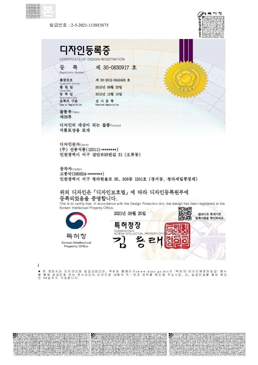 디자인등록증 (제09류)