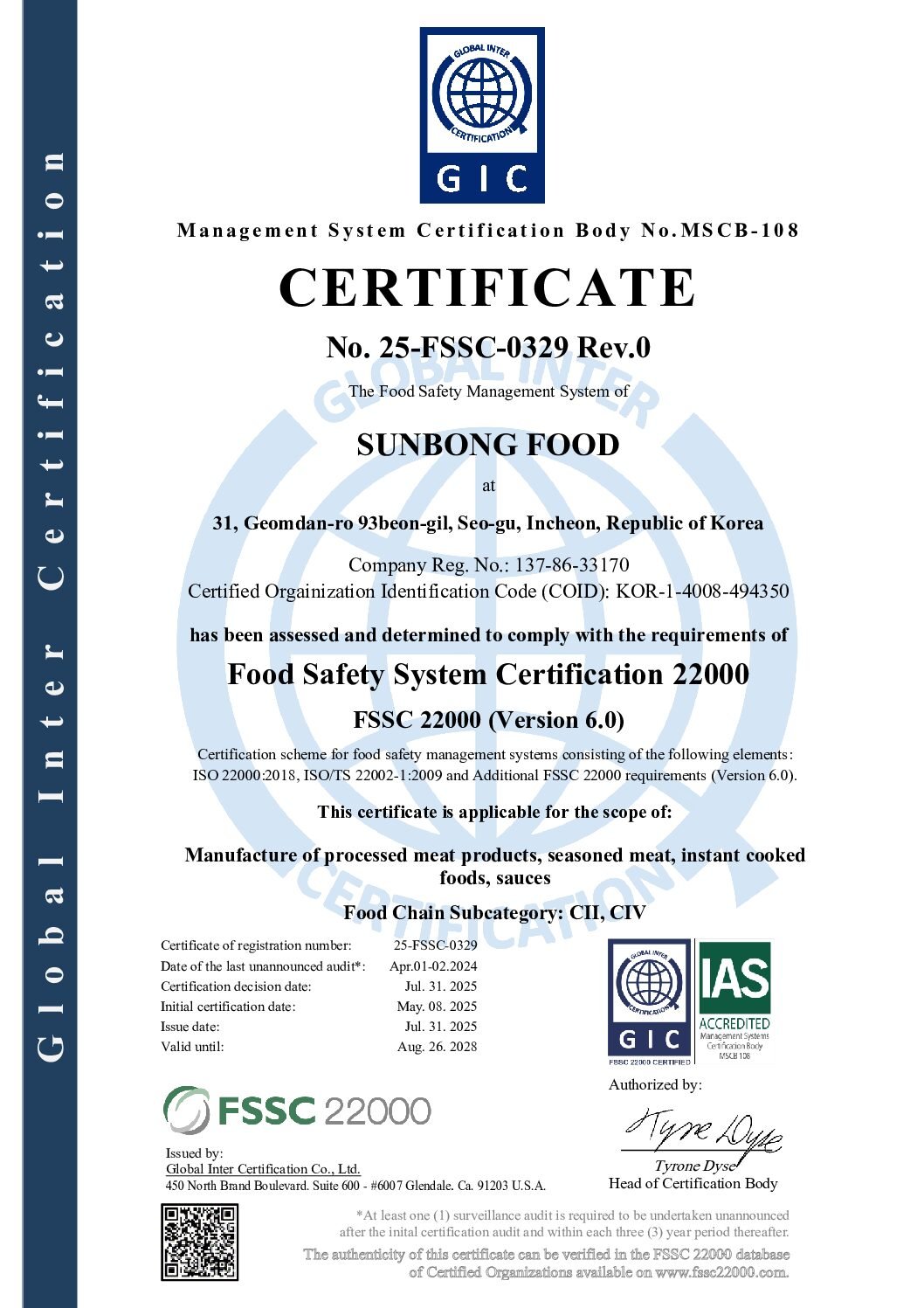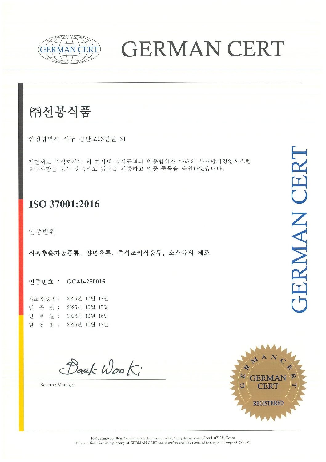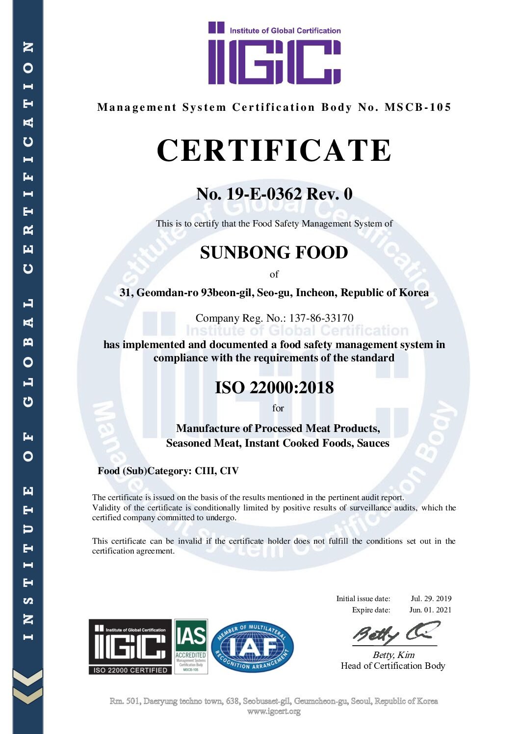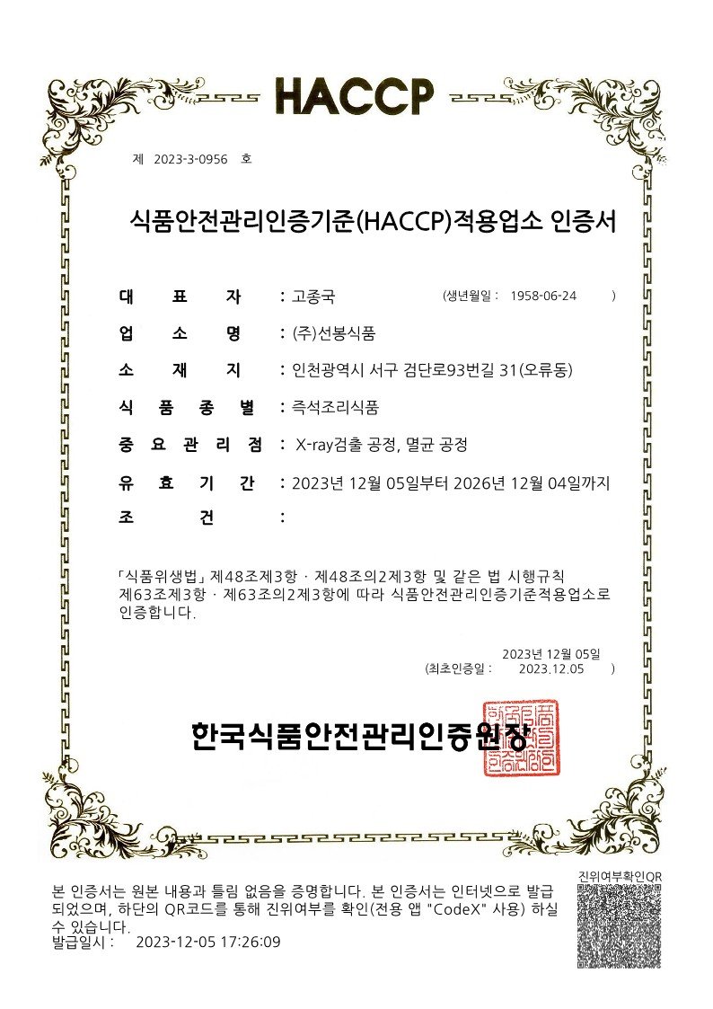 HACCP인증서(식품)