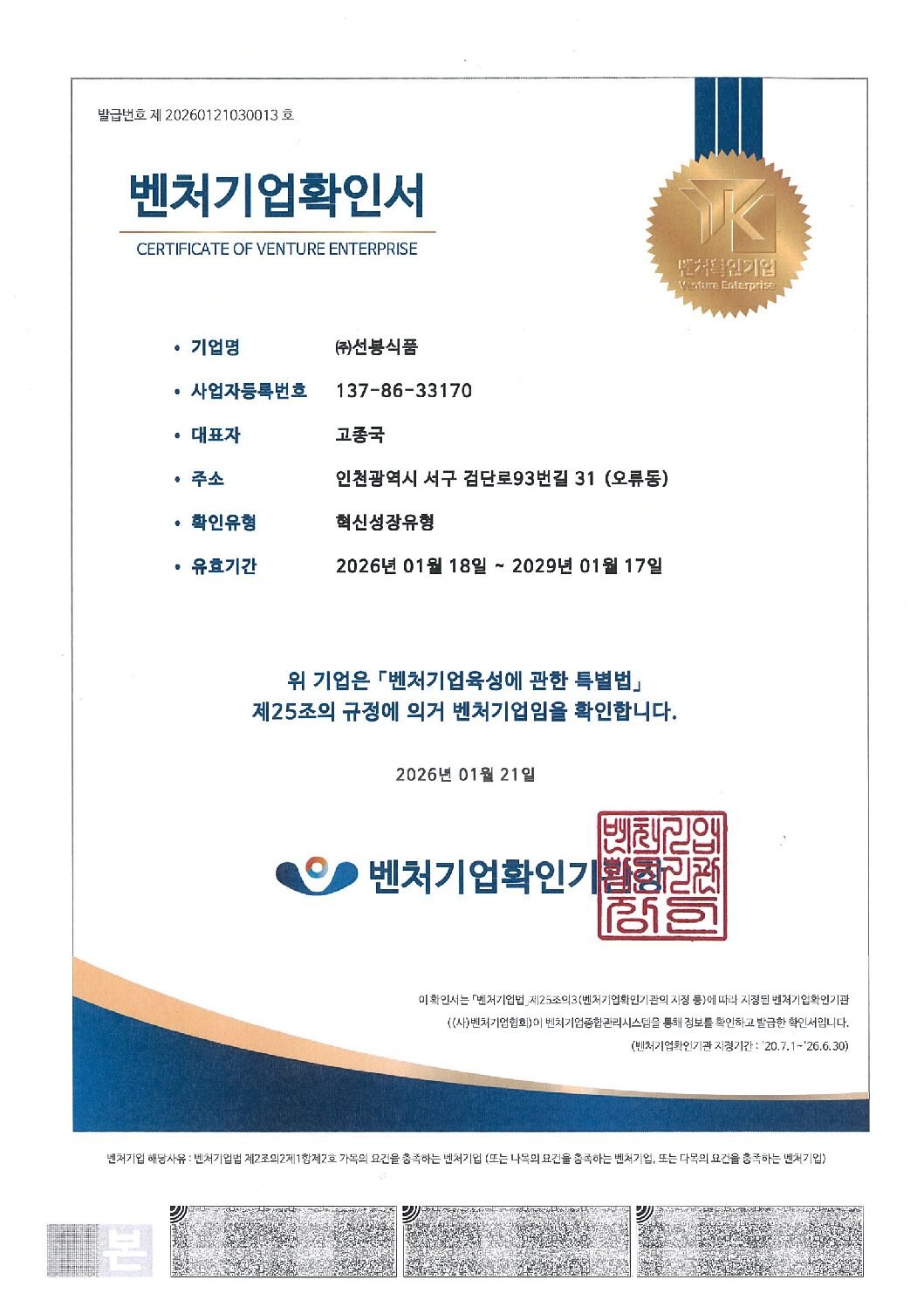벤처기업확인서