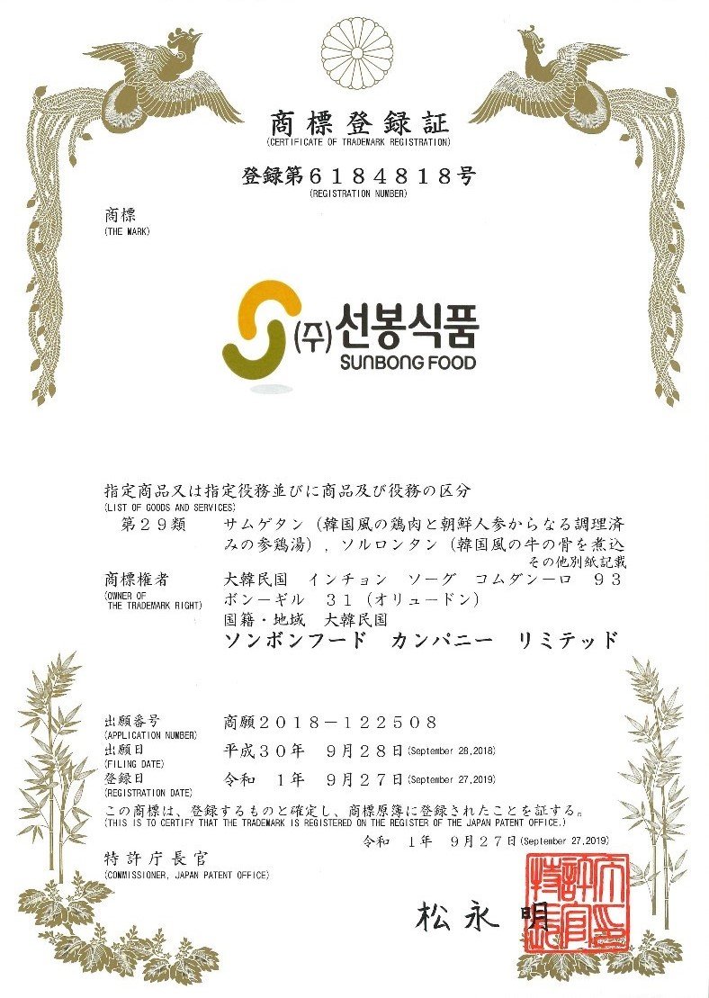 일본상표등록출원(선봉식품)